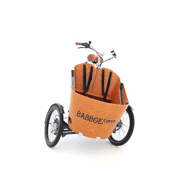 La Babboe e-Carve combina la stabilità di una cargo bike a tre ruote con la manegevolezza di una bici a due ruote. Adesso non è più necessario scegleire tra una cargo a tre ruote che offre stabilità a bassa velocità e una a due ruote che è flessibile e indicata per distanze più lunghe. La Babboe Carve offre il meglio di tutte e due le alternative.