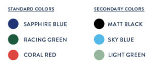 | Colori | Standard: blu, rosso, verde Secondari: nero, azzurro, verde chiaro |