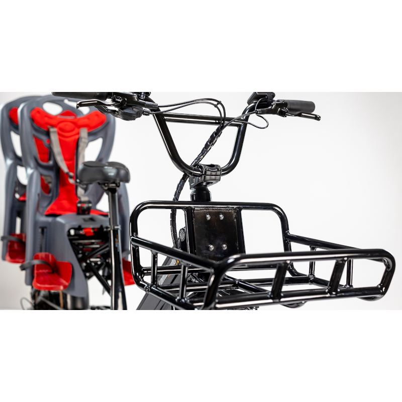 Dotata di potente motore elettrico, questa bici da trasporto è perfetta per affrontare le sfide urbane con facilità.