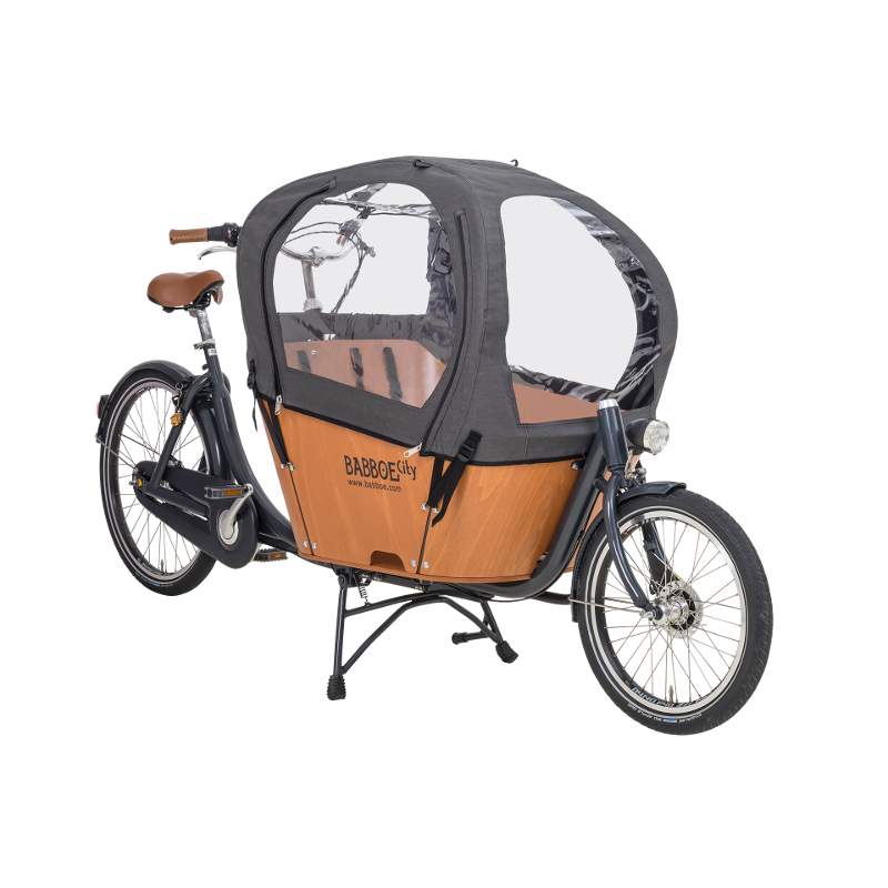 Tenda con ampi finestroni che protegge i bambini dal vento, dalla pioggia e dalla neve.